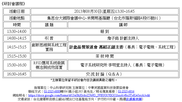 附件為研討會報名表,如欲報名參加的會員廠商請洽報名傳真專線:02-2325-6816、